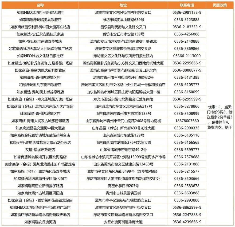 1.美食争霸赛为潍坊队投票助力,即享华住会潍坊40家门店8.8折住宿优惠。(入住时需出示关注文旅潍坊公众号或为潍坊美食争霸赛投票界面)。电线.华住会“学生卡免费领”住酒店7.5折起