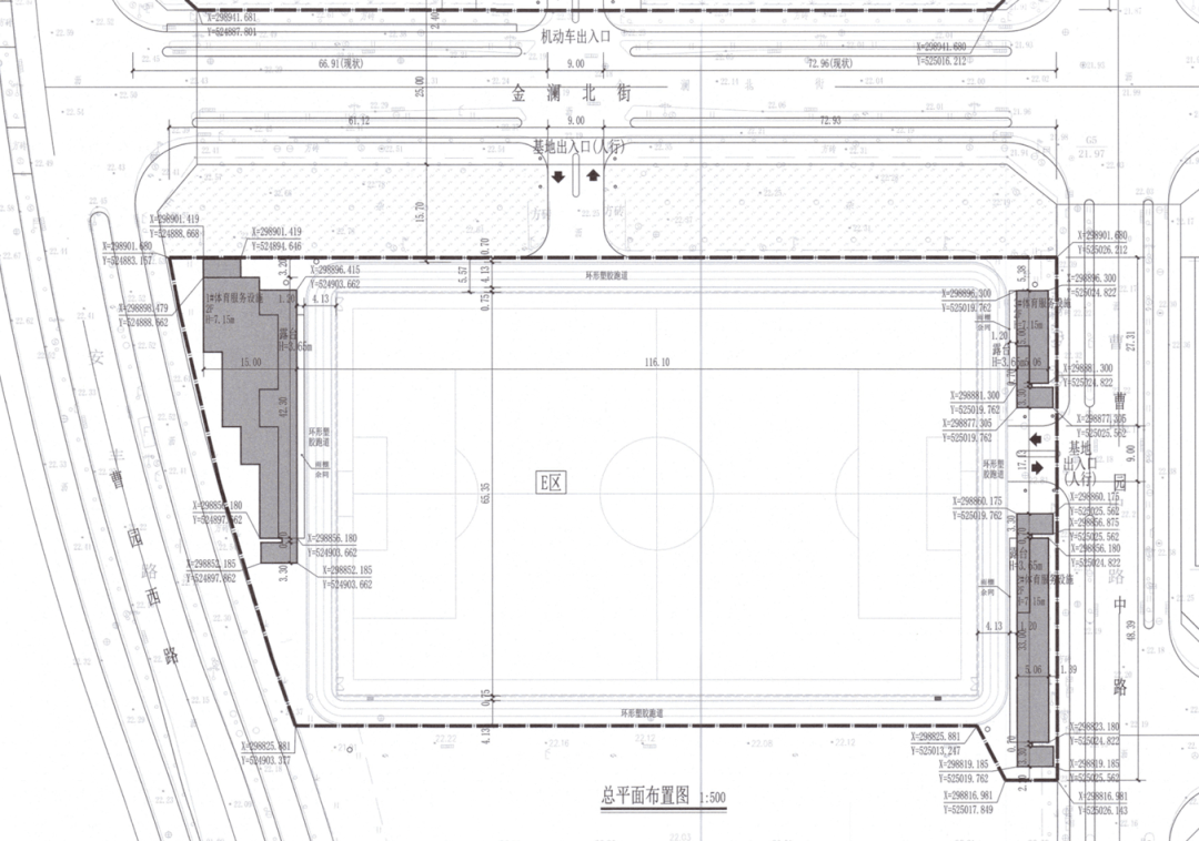 公告内还显示,A区是仅有一层的体育中心,设有篮球馆,羽毛球馆,网球馆,搏击馆及其公共配套设施。E区为2层的运动服务设施及办公建筑,同时设有足球场和环形塑胶跑道。两区的机动车停车位为74个。